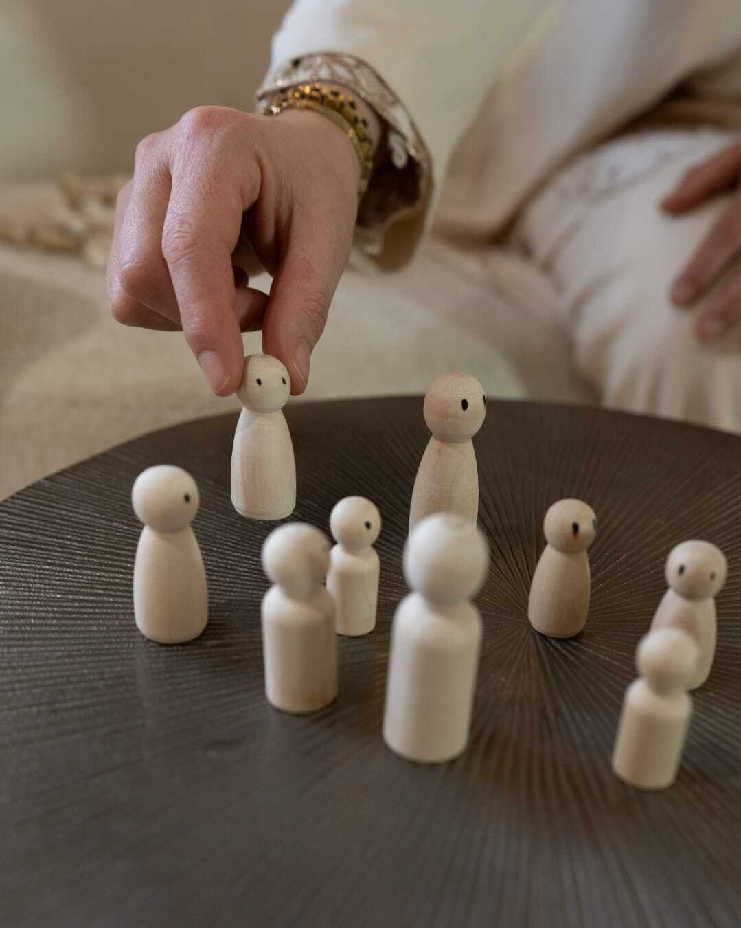 Je krijgt een notitieboekje én houten poppetjes waarmee je jouw systeem vormgeeft op tafel. Zien = begrijpen = veranderen. Deze tool neem je mee naar huis voor blijvende inzichten..